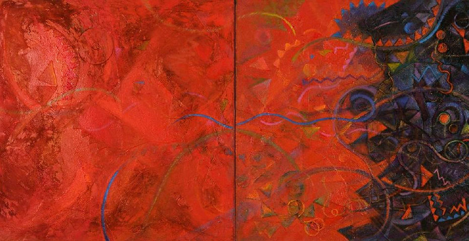 Acrylic over collage with ground rubber / dyptich 45"x45" each